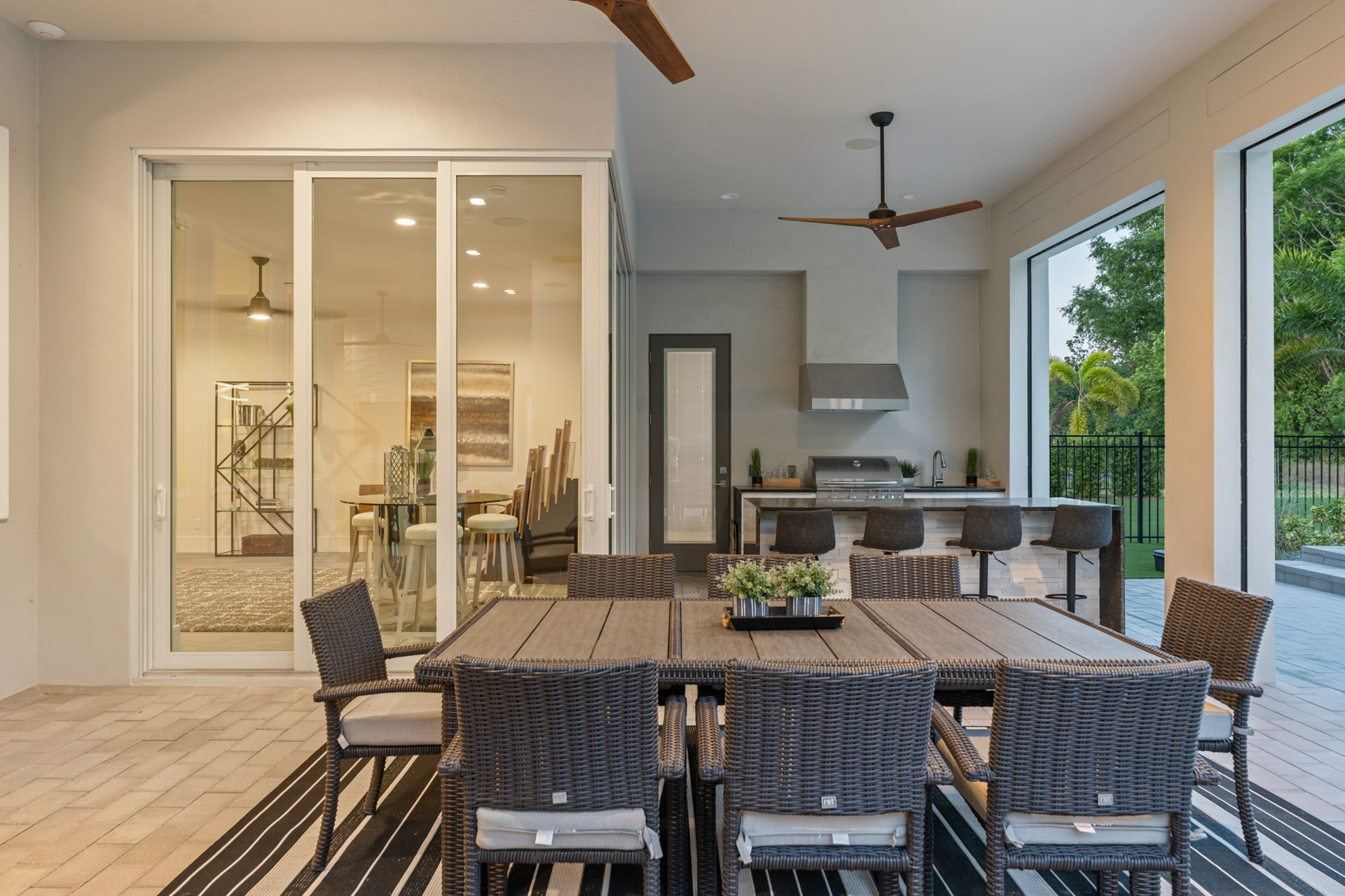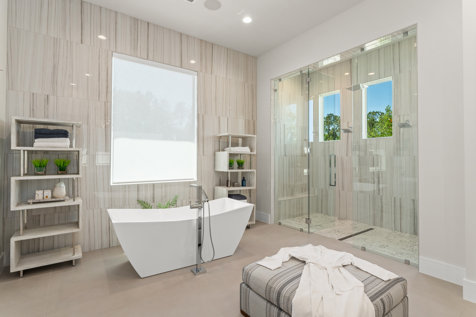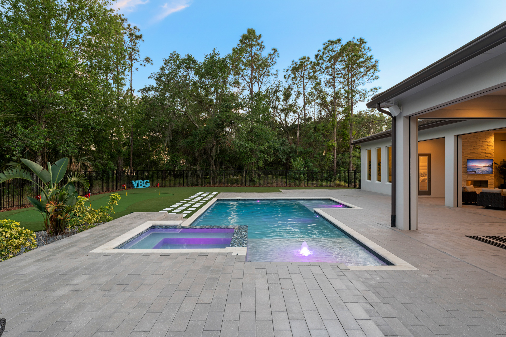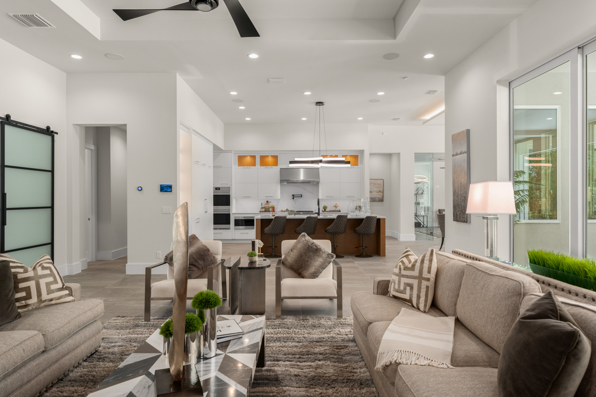 MODEL LEASEBACK OPPORTUNITY. Experience the pinnacle of modern luxury living in this stunning Bel-Air Model Home, showcasing transitional architecture with sleek contemporary elements. Encompassing 5 bedrooms, 5 bathrooms, and a 3-car garage, this 4,518 sq. ft. residence offers a seamless blend of style, comfort, and advanced technology. Step through the dramatic 10-foot entry door into a thoughtfully designed interior with 12-foot ceilings, engineered hardwood flooring, and designer finishes throughout. The expansive great room features a three-way glass fireplace and 10-foot pocketing sliding doors that open to the lanai, creating a fluid indoor-outdoor living experience. The gourmet kitchen is a culinary masterpiece, equipped with a full Wolf and Sub-Zero appliance suite, quartz countertops, a pot filler, and custom lighting. The luxurious primary suite impresses with a seating area, wet coffee bar, showcase closets with glass doors and LED lighting, and a spa-like bath with a freestanding tub and programmable retractable shade. Flexible living spaces include a front bedroom/office with a custom wine built-in, a guest suite with a private porch and kitchenette, and a media/flex room with pool bath access. Designed for effortless entertaining, the outdoor living space features a modern linear fireplace, a summer kitchen with a waterfall island, and a fully automated heated pool and spa. Additional highlights include a climate-controlled garage with a 10,000-pound car lift, synthetic turf landscaping, a sealed paver driveway, and a $150,000 Crestron smart home automation system controlling lighting, audio, video, security, and climate. Sold fully furnished with a $125,000 designer package, this turnkey residence offers an unparalleled lifestyle of sophistication, comfort, and cutting-edge innovation. Builder will leaseback the home from the Buyer for a period of one year from the date of closing compensating the Buyer $10,000.00/month. Buyer will be responsible for the annual property taxes during the leaseback period. Seller will pay the club sports membership fees, HOA fees, pool and lawncare, utilities and insurance on the home during the leaseback period.