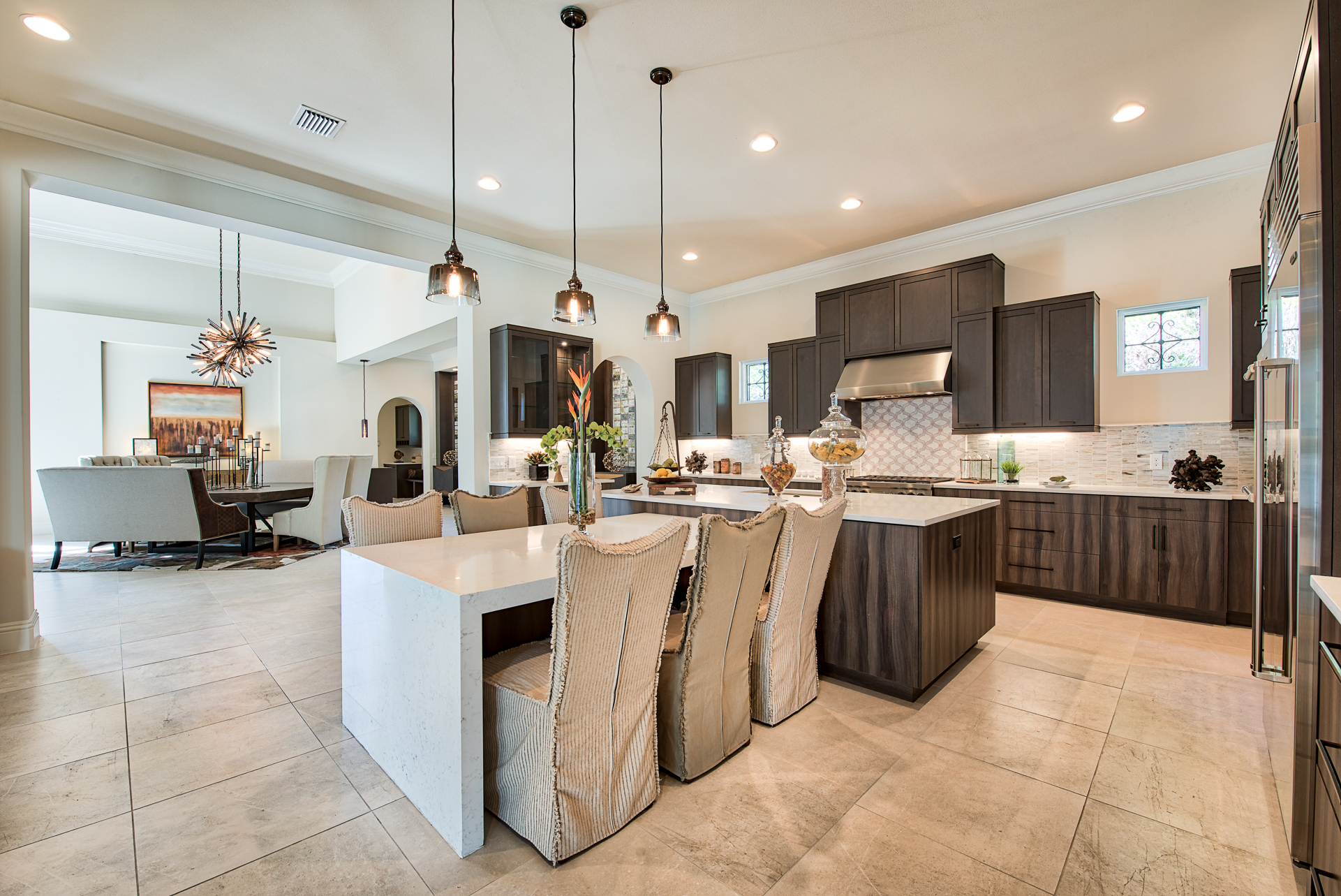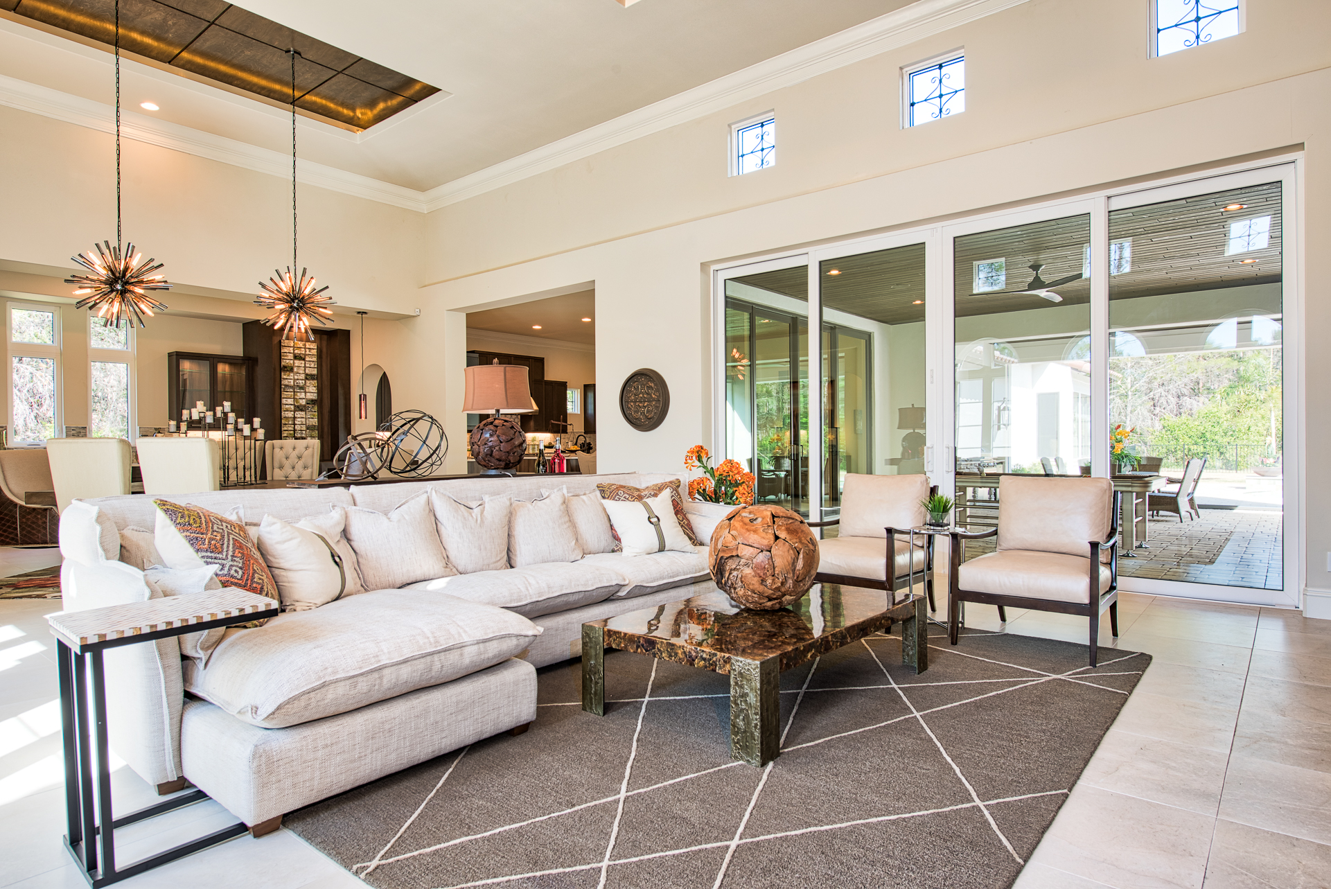 • Spacious volume ceilings in kitchen, living, dining, and family rooms