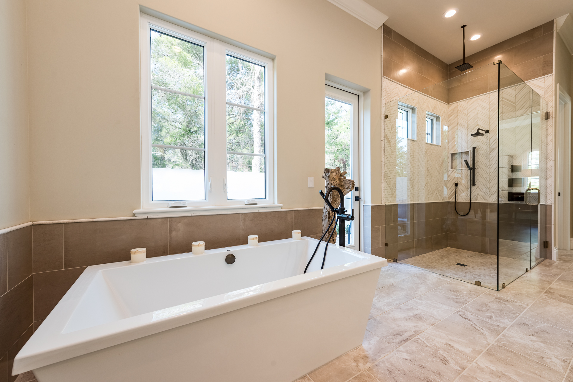 • Beautiful views through the expansive rear glass and sliding glass doors per plan.