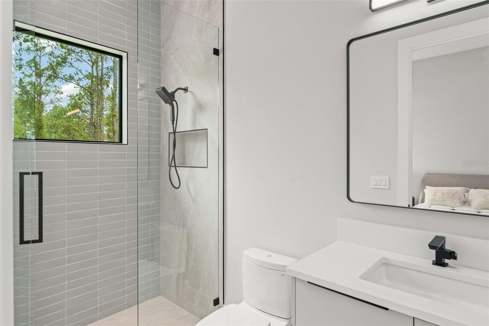 A bold expression of modern architecture...a newly completed custom estate in the guard-gated community of Bella Collina. Perfectly positioned on an elevated preserve lot, this striking residence features clean lines, dramatic symmetry, and a tiered water feature leading to an impressive entry. Inside, over 6,400 square feet of designer-curated interiors present a seamless blend of minimalism and warmth. The main living space showcases soaring ceilings, expansive sliders, and a sleek chef’s kitchen with integrated appliances, custom cabinetry, and a concealed catering kitchen. A floor-to-ceiling wine wall accents the formal dining area, while the grand living room invites effortless indoor-outdoor living. The serene primary suite overlooks a courtyard, separating the main home from the detached gym and guest quarters, and includes a spa-inspired bath with separate walk-in closets for him and her, each custom-designed with integrated lighting and modern finishes. Two guest bedrooms with ensuite baths, a media room, and a third guest suite which also functions beautifully as a flex space complete the interior layout. Across the courtyard, private wellness and guest suite provides incredible flexibility with a full in-law suite including an ensuite bath, a private gym, a sauna with indoor shower, a full kitchen (no oven), and lounge space—all with direct access to the pool and a private outdoor shower. Enjoy resort-level living with a summer kitchen, sunken firepit, and a show-stopping pool and spa complete with water features and a retractable movie screen. Residents of Bella Collina enjoy exclusive access to a Sir Nick Faldo-designed golf course, a private lakefront clubhouse, two restaurants, luxury spa, fitness center, tennis, pickleball, and numerous social and culinary events. This one-of-a-kind estate combines sculptural architecture with lifestyle-driven design in one of Central Florida’s most coveted communities. The $40,000 Sports Membership Deposit is deferred from the developer