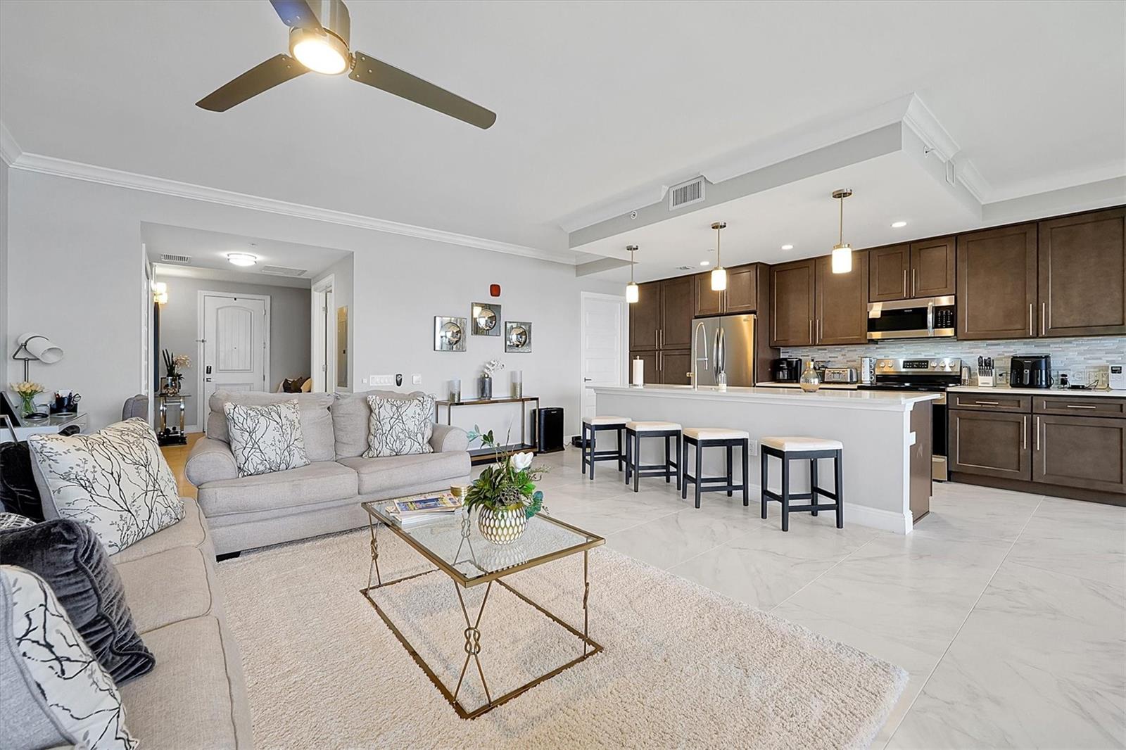 Enjoy the space of a 3-bedroom home for the price of a two-bedroom. This beautifully customized 2-bedroom plus den, 3-bathroom condo features a unique layout with one of the bedrooms converted into a spacious den, perfect for a home office, or entertainment room. The den can easily be converted back into a third bedroom, offering flexibility to fit your lifestyle. Located in the peaceful lakefront community of Siena at Bella Collina, this home combines comfort and elegance in one of Central Florida’s most desirable neighborhoods. Step onto your private screened balcony and take in breathtaking sunrise views over Lake Siena. The open-concept layout features a chef’s kitchen that flows seamlessly into the combined family and dining area. The kitchen is equipped with a spacious island, quartz countertops, and stainless steel appliances. Both bedrooms offer en suite bathrooms, and there’s an additional full guest bath for added convenience. As a resident of Bella Collina, you will enjoy premium amenities including a resort style pool, 24-hour fitness center, outdoor grill and dining area, and access to the Club’s spa, restaurants, and year-round events. The HOA covers water, cable, internet, and two assigned parking spots. This home is move-in ready and priced to sell. Don’t miss the chance to make it yours.