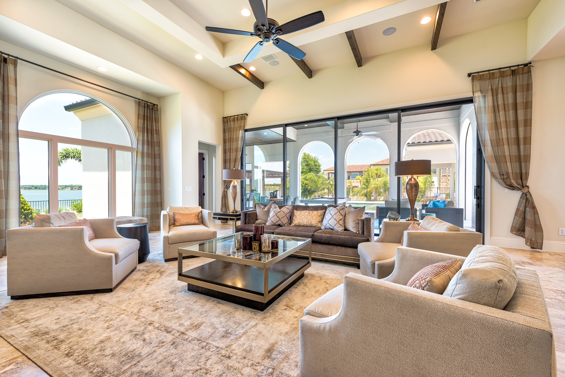 • Spacious volume ceilings in kitchen, living, dining, and family rooms