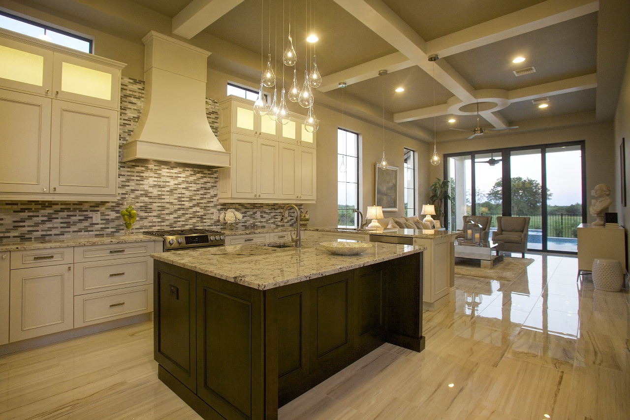 • Spacious volume ceilings in kitchen, living, dining, and family rooms