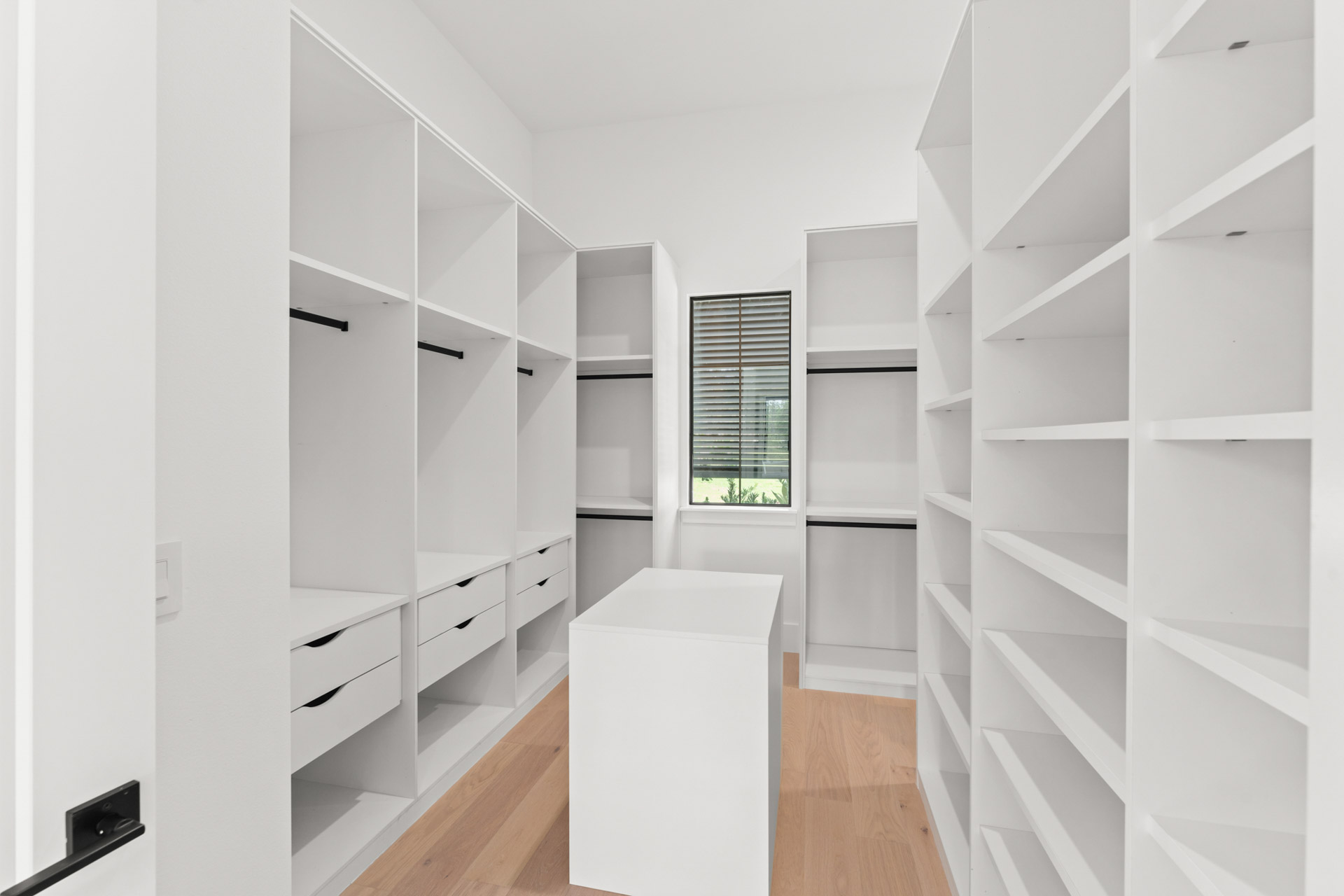 The first-floor primary suite is a peaceful retreat with his and hers walk-in closets, dual vanities, a luxurious shower, and a soaking tub. A private guest suite with an en suite bath and French doors opens to the backyard. Additional highlights include a spacious home office, a functional mudroom, and a laundry room with a dog wash station, utility sink, and ample storage.