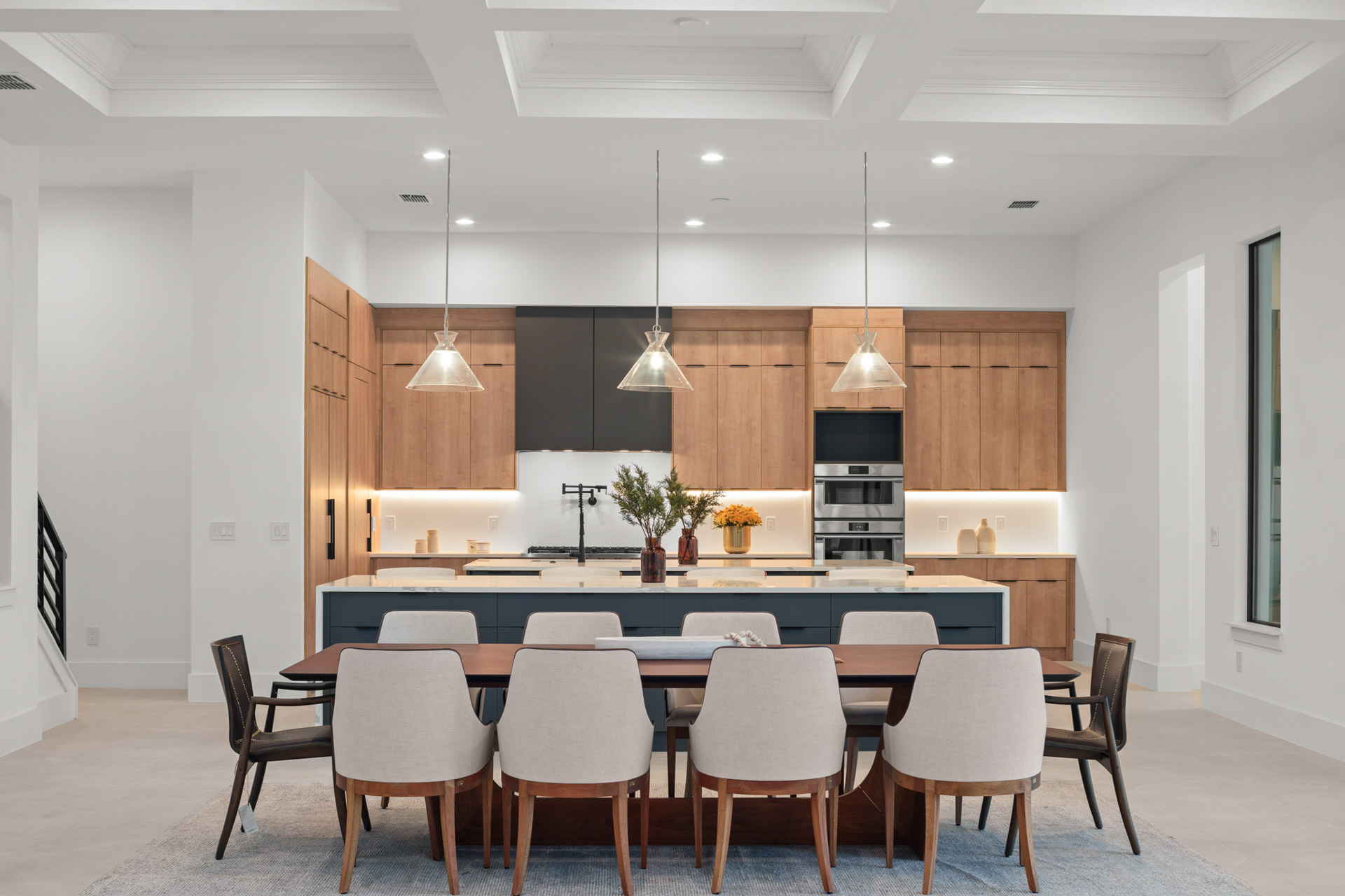 Discover the epitome of luxury living in this beautifully designed home, meticulously crafted to offer both elegance and functionality. The gourmet kitchen is a chef's dream, featuring Fisher & Paykel appliances, an 8-burner gas range with a hood and pot filler, and two expansive islands, including a quartz waterfall island with seating. The open-concept Great Room boasts a coffered ceiling and seamlessly connects to the outdoor lanai through two sets of 12-foot pocket sliding glass doors. Outside, enjoy multiple seating areas, a fully-equipped summer kitchen, and a stunning pool and spa oasis—ideal for entertaining or relaxing.