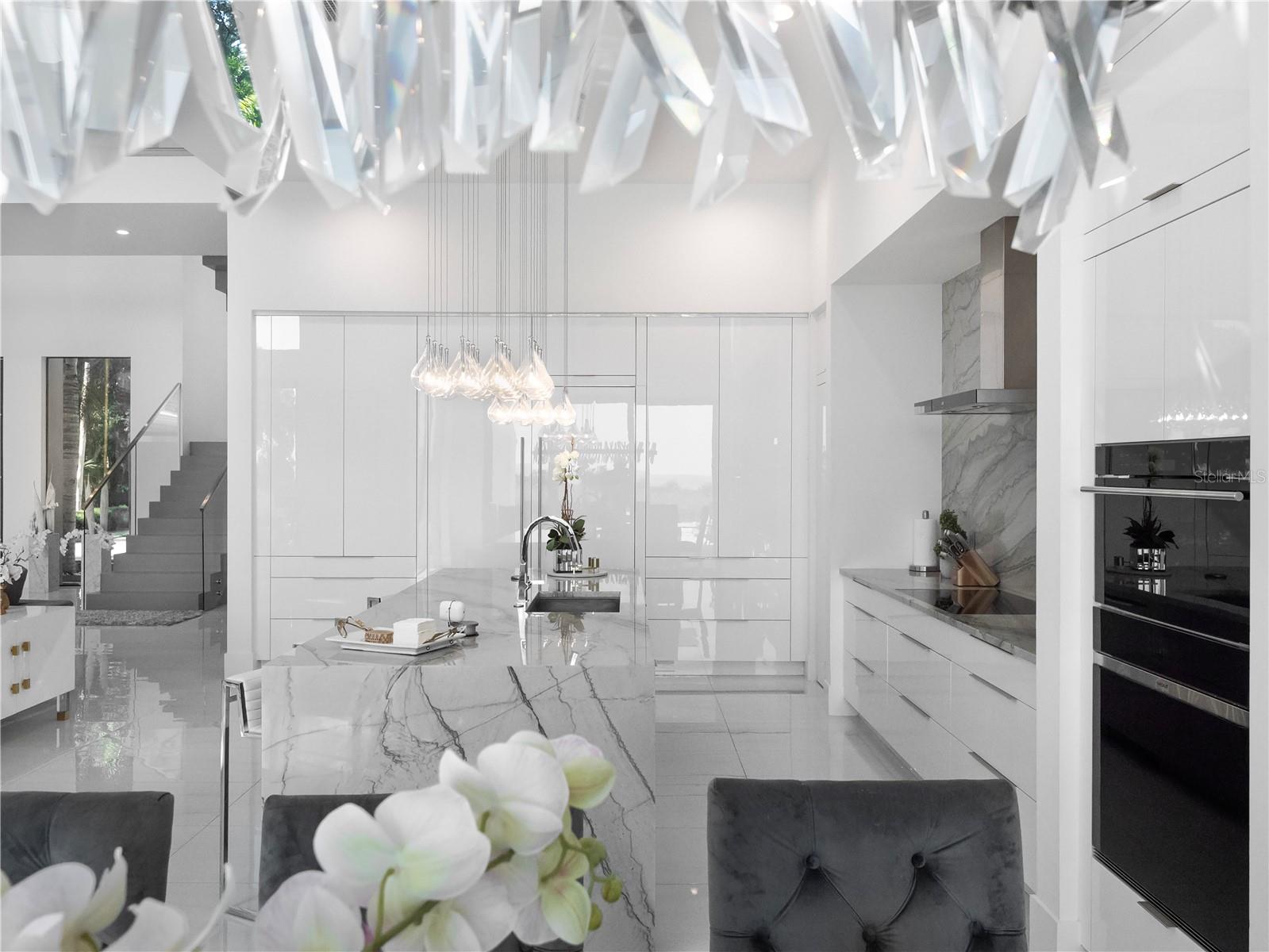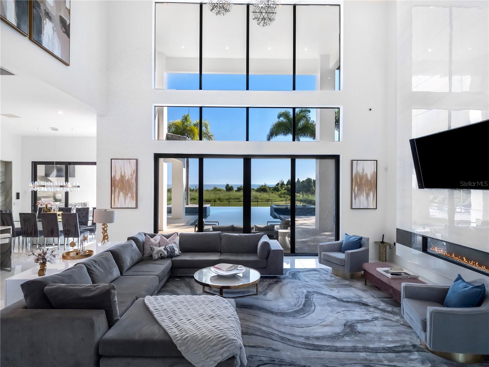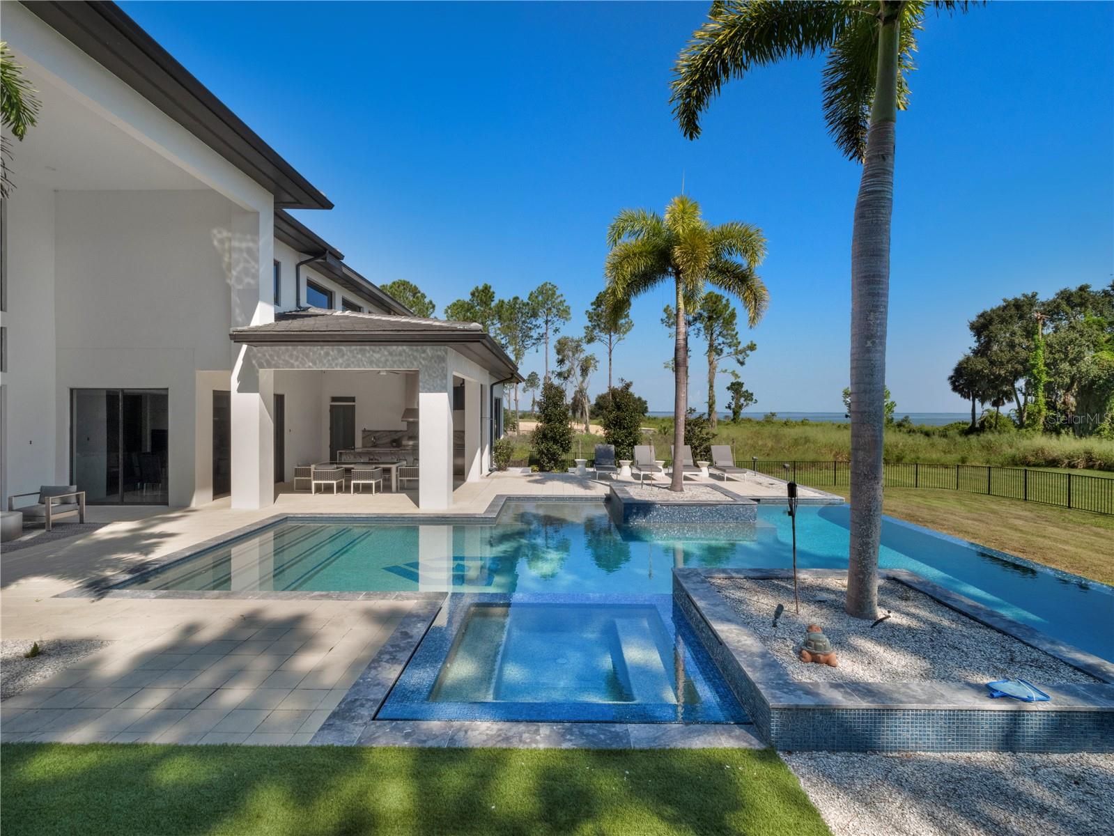 Welcome to the ONLY move in ready fully custom home with an opportunity for a private boat dock offering LONG RANGE VIEWS on Lake Apopka. This immaculate showcase home in the highly sought after gated community of Bella Collina offers panoramic views from the moment you step inside. Soaring 24 ft ceilings with sleek lines compliment the decor and modern design of the home. The abundance of large windows and 10 ft sliding doors allow for plenty of natural light from every angle. A chef’s kitchen boasts a hidden walk-in pantry, Sub Zero fridge with matching cabinet front panels, Wolf induction cook top with hood, wolf drawer microwave. The large island overlooks the great room, adjacent to the dining area and wine wall, all offering spectacular views of the custom designed pool and lake Apopka. As you enter the primary suite you can’t help but notice the soaring ceilings, 10 ft sliding glass doors with blackout drapes, and the tremendously large platform bed. The gorgeous ensuite bathroom presents a free-standing soaking tub, large walk-in shower with multiple jets, rain shower head and remote controls, separate vanities, additional make up vanity, along with his and hers toilets. Passing through the bathroom you enter the incredible double story closet with waterfall island illuminated by an elegant chandelier in the center which drops down from the second floor. A staircase from the two story closet opens to the second floor loft/media area that can double as a theatre room. Four additional oversized bedrooms have ensuite bathrooms, walk in showers and remote-controlled window shades. Additional features are an air-conditioned basketball court, large home gym with weight equipment and sauna. The backyard oasis with outdoor kitchen and custom pool with spa are perfect for taking in the peaceful views. The owner has installed a mosquito misting system in the backyard. There is plenty of space perfect for entertaining family and friends. The Savant smart home technology with iPad/cell integration offers full home automation including six interior/ten exterior cameras with voice recording, sound system in every room, remote control blinds, door locks, air conditioning, and complete home lighting with customizable mood settings. Additional features are an air-conditioned basketball court, large home gym with weight equipment and sauna. The Club at Bella Collin offers year-round social and culinary events for all ages. Enjoy a game of pickle ball, a round of golf or a challenging tennis march with neighbors. Bella Collina offers unparalleled amenities including the Nick Faldo designed 18-hole golf course, outdoor pool complex, multiple dining venues and fitness center offering 20 complimentary fitness classes a week This custom masterpiece must be seen to truly appreciate its beauty and elegance. Call to today to set a private viewing appoint and to learn more about the lifestyle offered in Bella Collina.