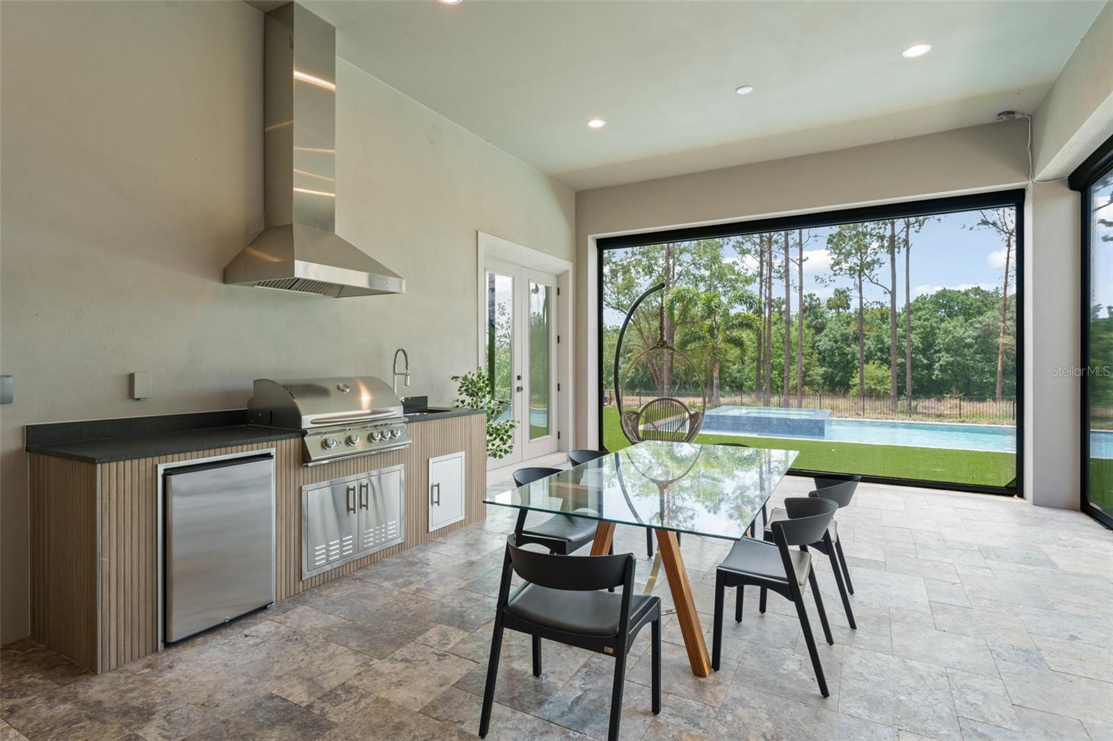 Experience the pinnacle of luxury in this exquisitely crafted home, showcasing an array of premium features throughout. The gourmet kitchen is a culinary masterpiece, equipped with Fisher & Paykel appliances, including an 8-burner gas range with a hood and pot filler. Two expansive islands, including a stunning quartz waterfall island with seating, seamlessly transition into the open-concept Great Room with a coffered ceiling. Two sets of 12-foot pocket sliding glass doors extend your living space to the expansive outdoor lanai, featuring multiple seating areas, a fully-equipped summer kitchen, and a breathtaking pool and spa oasis, perfect for entertaining. The first-floor primary suite is a tranquil retreat, boasting his and hers walk-in closets, dual vanities, a luxurious shower, and a soaking tub. A private guest suite off the kitchen features an en suite bath, built-in closet, and French doors opening to the backyard. An oversized office on the main level provides a perfect workspace for those working from home. The functional mudroom and spacious laundry room include a dog wash station, utility sink, and ample storage. Upstairs, three generously sized bedrooms each have oversized closets and en suite bathrooms. At the top of the staircase, double doors lead to a charming covered balcony overlooking the front entry. The enclosed loft, accented with French doors, opens to a large covered balcony that overlooks the pool area, providing a serene space for relaxation or entertaining. This home exemplifies luxury living with impeccable attention to detail and a seamless blend of indoor and outdoor spaces. Bella Collina offers an unparalleled lifestyle with world-class amenities, including a Sir Nick Faldo-designed 18-hole golf course, a resort-style pool complex, a state-of-the-art fitness center with 20 complimentary classes each week, Har-Tru tennis courts, and pickleball facilities. Enjoy multiple dining options with both indoor and patio seating, a full-service spa, and a vibrant calendar of year-round social and culinary events for all ages. This meticulously maintained estate is truly one-of-a-kind and must be seen to be fully appreciated. Schedule your private tour of this exceptional home and experience the Club at Bella Collina. Call today to book your exclusive showing. Deferral of the $40,000 Sports Membership Deposit is included by the Developer.