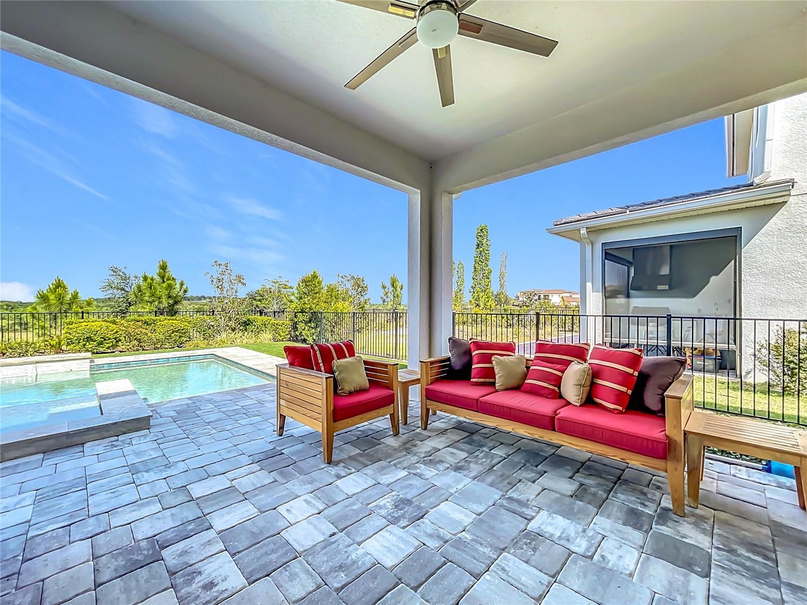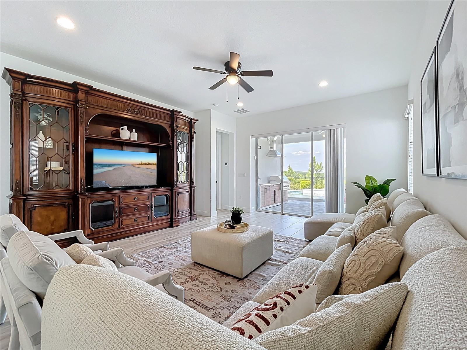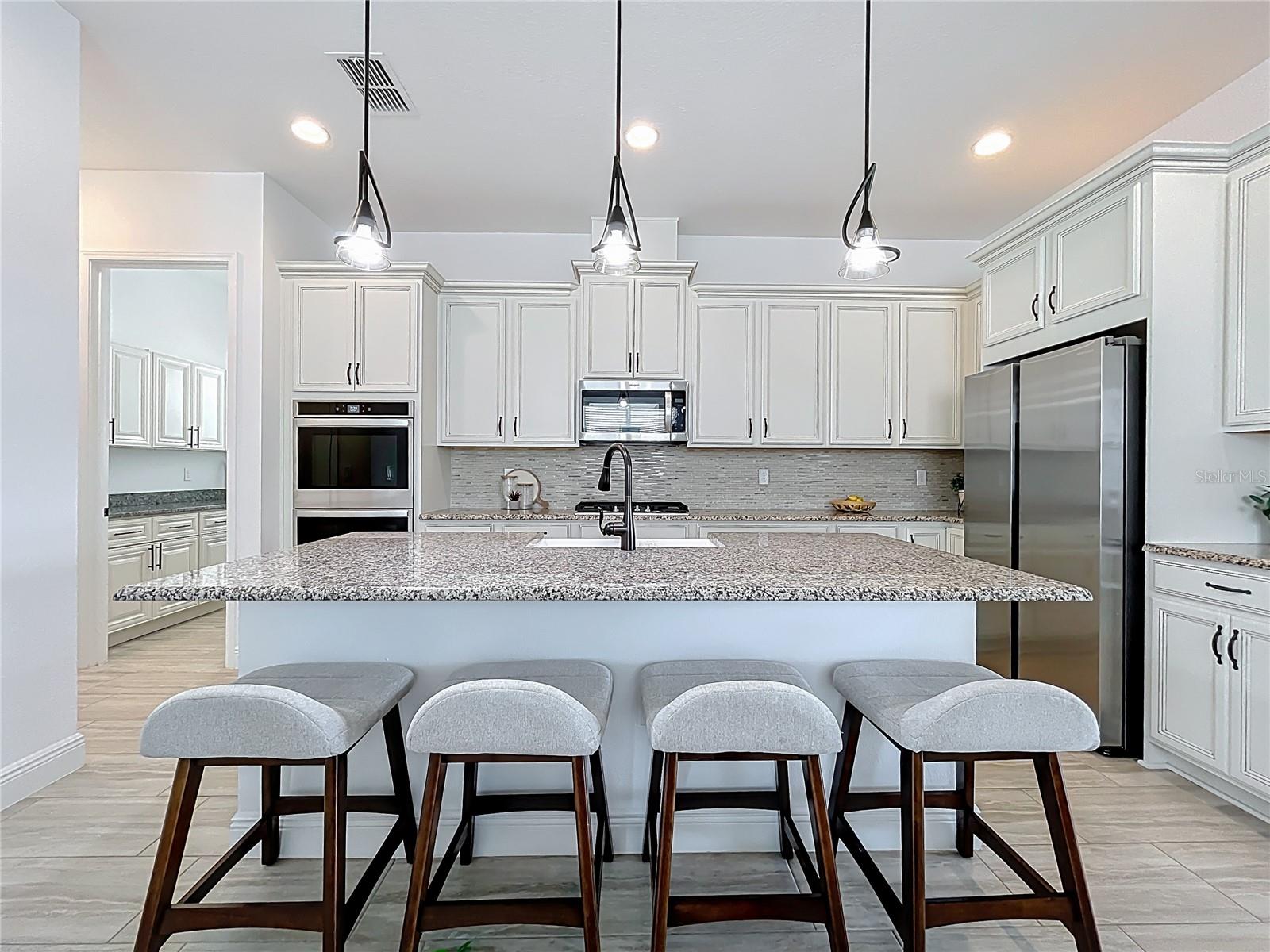 $40,000 Club Membership Incuded! Elegant golf course home with designer upgrades located on the green of the 4th hole of the Nick Faldo-designed Golf Course of Champions. This spacious residence offers refined living with thoughtful details throughout. The first-floor primary suite showcases panoramic golf views, a spa-style bathroom with a mosaic walk-in shower, double sinks, and a generous walk-in closet. The gourmet kitchen features stainless steel appliances, gas stove, farmhouse sink, and ample cabinetry. Upstairs includes a large bonus room and four guest bedrooms with stunning course views. Step outside to your private backyard oasis featuring a heated saltwater pool, spa, putting green, and tropical landscaping—ideal for entertaining or relaxing. The 2-car garage is finished with epoxy floors and keypad entry. Residents of Bella Collina enjoy luxury amenities including fine dining, full-service spa, fitness center, tennis, pickleball, basketball courts, walking trails, private boat ramp, and proximity to the renowned schools and attractions.