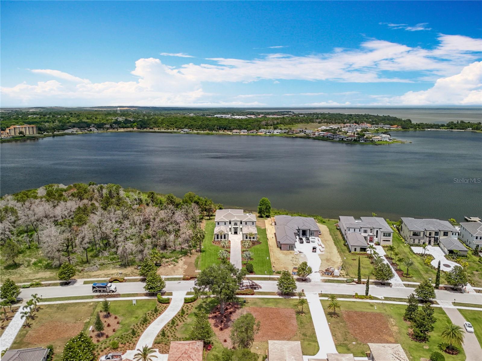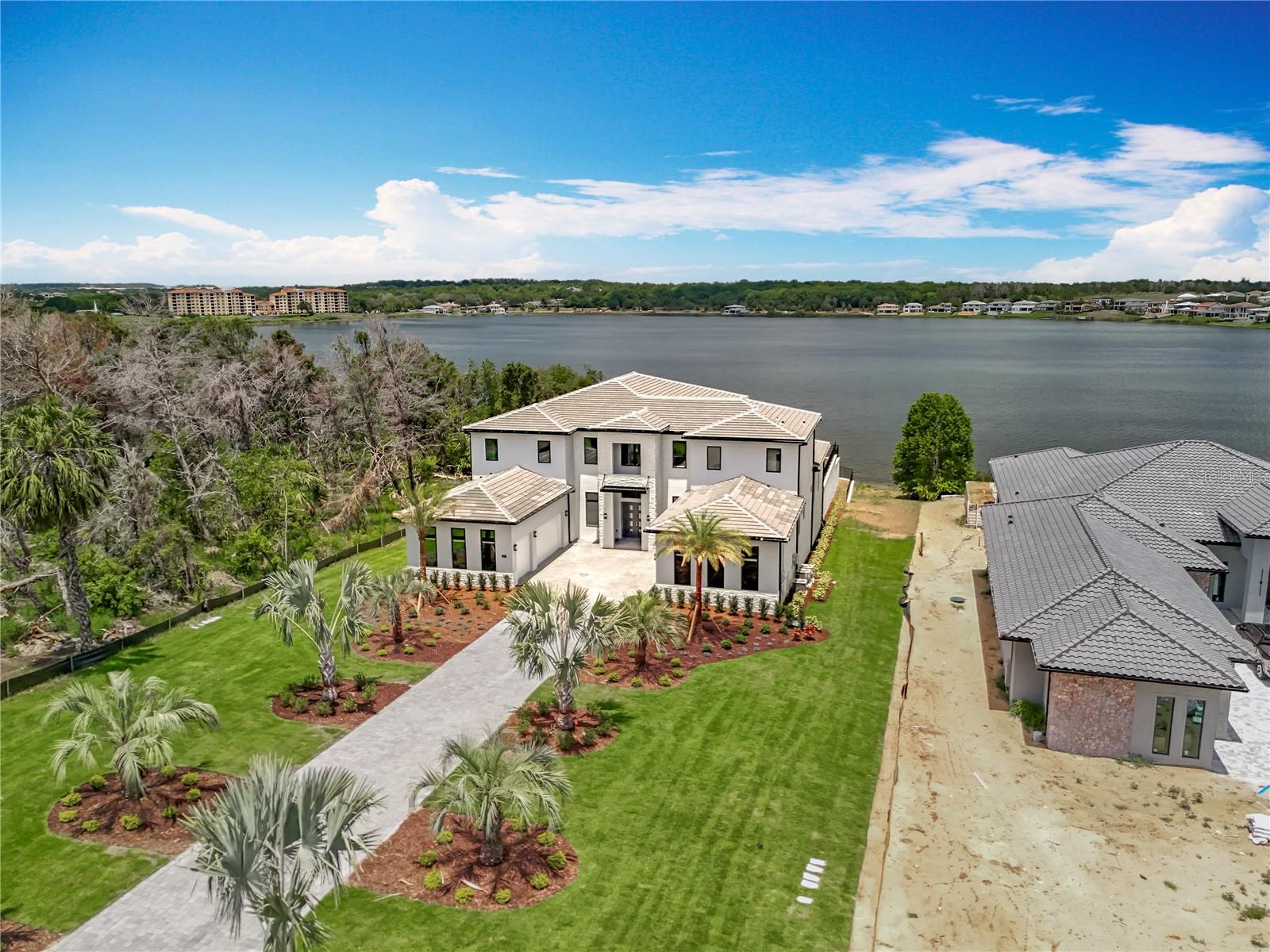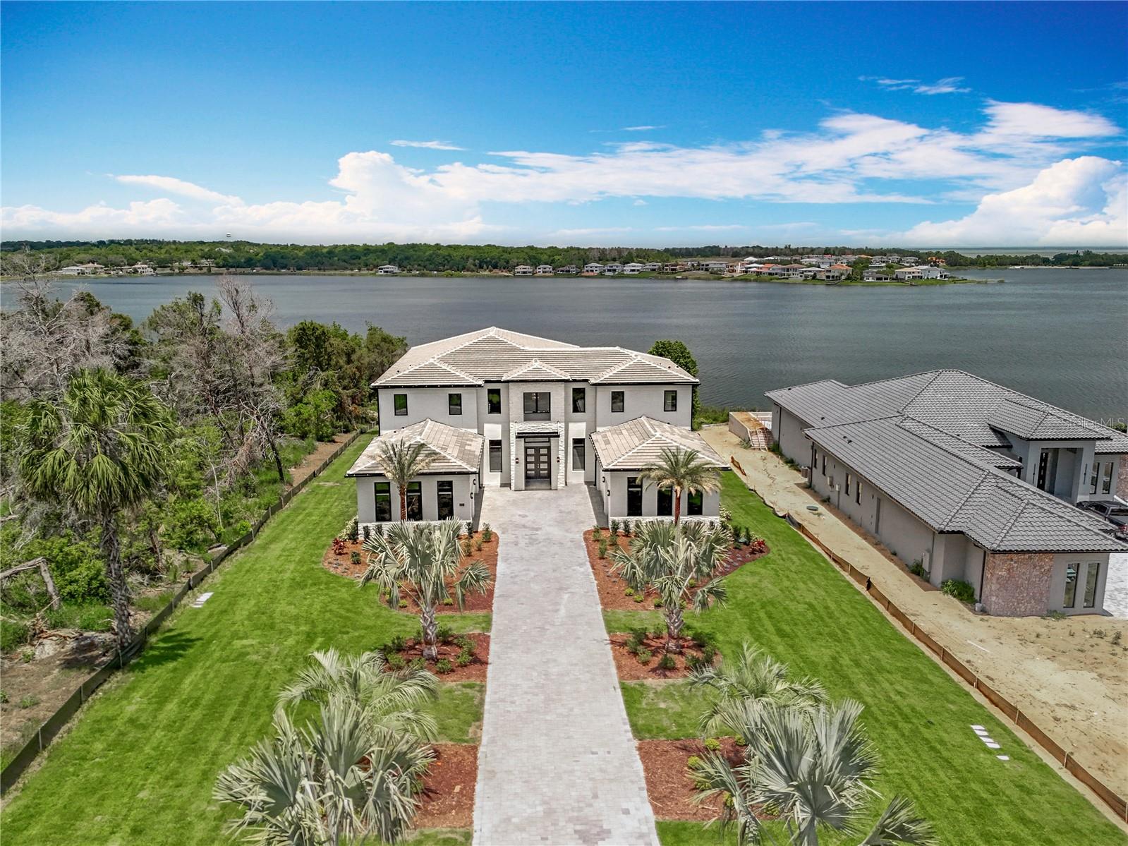 STAND OUT FROM THE ORIDNARY and elevate your lifestyle into the breathtaking realm of Bella Collina! Introducing a newly constructed luxury lakefront residence highly positioned on an expansive acre-plus lot in the exclusive Estates section of the community. Overlooking the serene shores of Lake Sienna, this exceptional home offers panoramic water views, sophisticated interior finishes, and an ultra-impressive outdoor living space designed for both relaxation and entertaining. This is more than just a home, it’s a statement of purpose and meaning. From the moment you step through the covered entry, you’re met with dramatic architectural elements including double floating staircases, a soaring two-story open concept gathering space and uninterrupted sightlines to captivating lake views. The main level has been thoughtfully designed for both convenience and everyday living and features a grand, open concept living, dining, and kitchen area, a luxurious primary suite with lake views, a secondary en-suite bedroom, a versatile flex room, powder bath, large laundry room, and a practical drop zone off one of two oversized three-car garages. Upstairs, a walkway bridge for added privacy separates three additional en-suite bedrooms, a private home office, and a spacious loft and media room prewired with multiple Cat 6 outlets for today’s connected lifestyle. What truly sets this home apart is the outdoor living area with a spacious travertine deck, high ceiling covered lanai, fully equipped summer kitchen, gas fireplace, and a dedicated pool bath and shower - all framed by picturesque water views. The custom-designed infinity-edge pool is flanked by two raised pedestal mounts ideal for fire bowls or water features. A multi-person heated spa and sun shelf invite tranquil moments under the sun. A stately cascading staircase leads to a lower-level retreat with artificial turf and aluminum fencing—prime for a fire pit or lounging area. A second terraced area below takes you down to a sprawling backyard with over 140 feet of shoreline. Planning to bring your boat? This is one of the select properties that can accommodate a private dock. Completed in April and awaiting your personal touch, this home is an extraordinary opportunity to own in one of Florida’s most prestigious guard-gated, golf communities. Bella Collina spans over 2000 acres and is truly a one-of-a-kind compelling setting from awe-inspiring scenery and topography to a collection of striking homes of distinction offering an unmatched lifestyle for those wanting luxury lakefront living. Highlights of the features and amenities include a Tuscan-inspired hilltop village showcasing a world-class 75,000 square foot clubhouse, ballroom, full-service spa, restaurants and bars. There are also tennis, pickleball courts, a state-of-the-art fitness center, resort-style pool w/ lap lanes, dog park and even a heli-pad. It is conveniently located within easy reach of Orlando International Airport, downtown Orlando, the town centers of Winter Garden, Clermont, Minneola, and the highly anticipated Olympus Project in Wellness Way. Outdoor enthusiasts will love the West Orange Trail just a few miles away. Top rated schools, hospitals, shopping, and dining are close by. Theme parks are a short easy drive... Whether you're seeking an upscale, active way of life filled with social aspects and a variety of choice activities, or a peaceful haven of refined living, 15121 Pendio delivers it all.