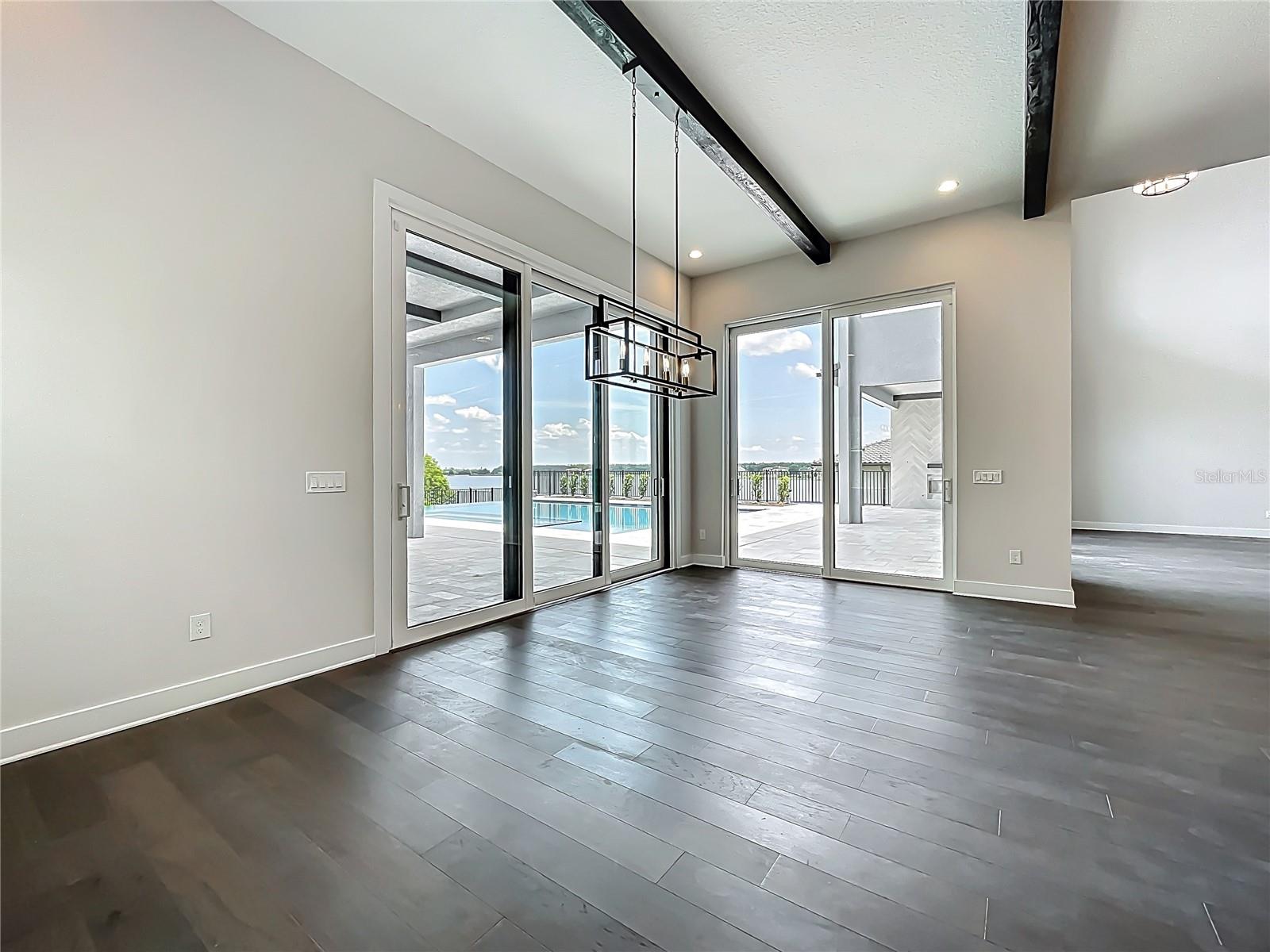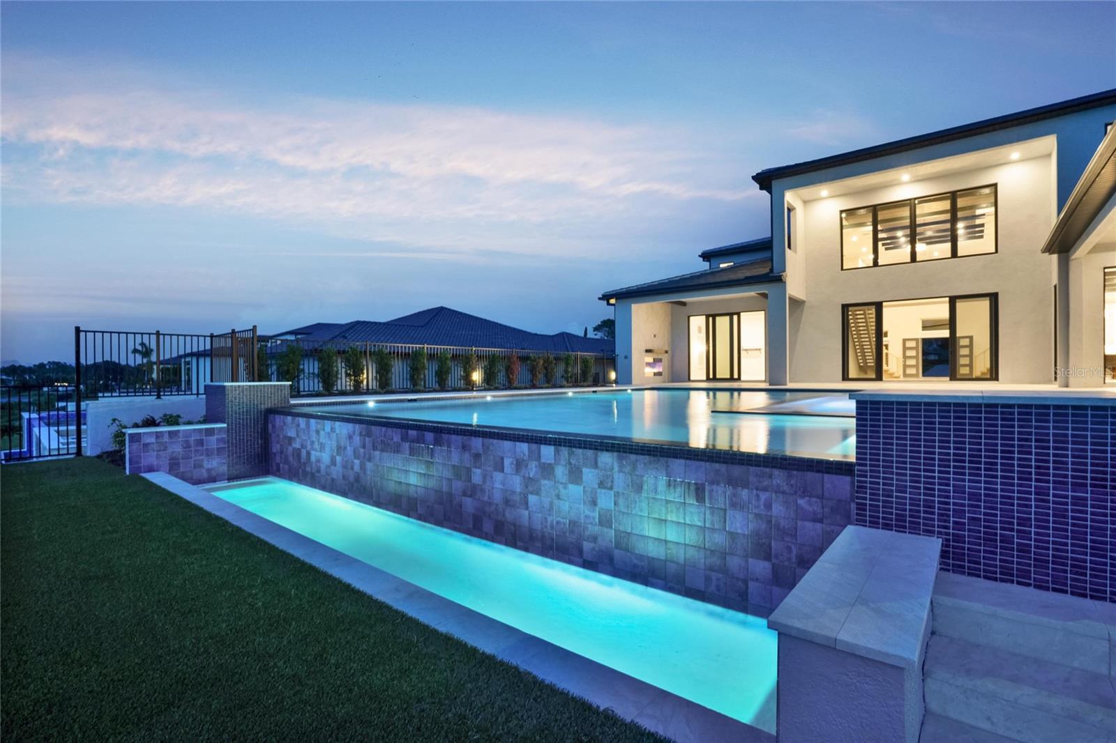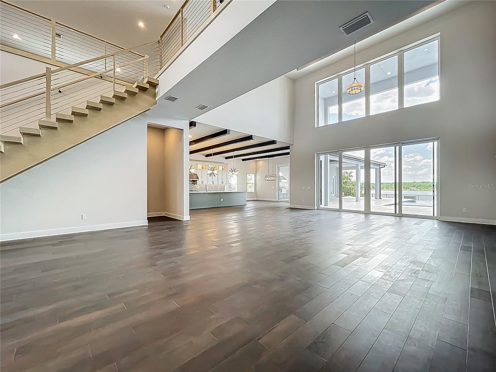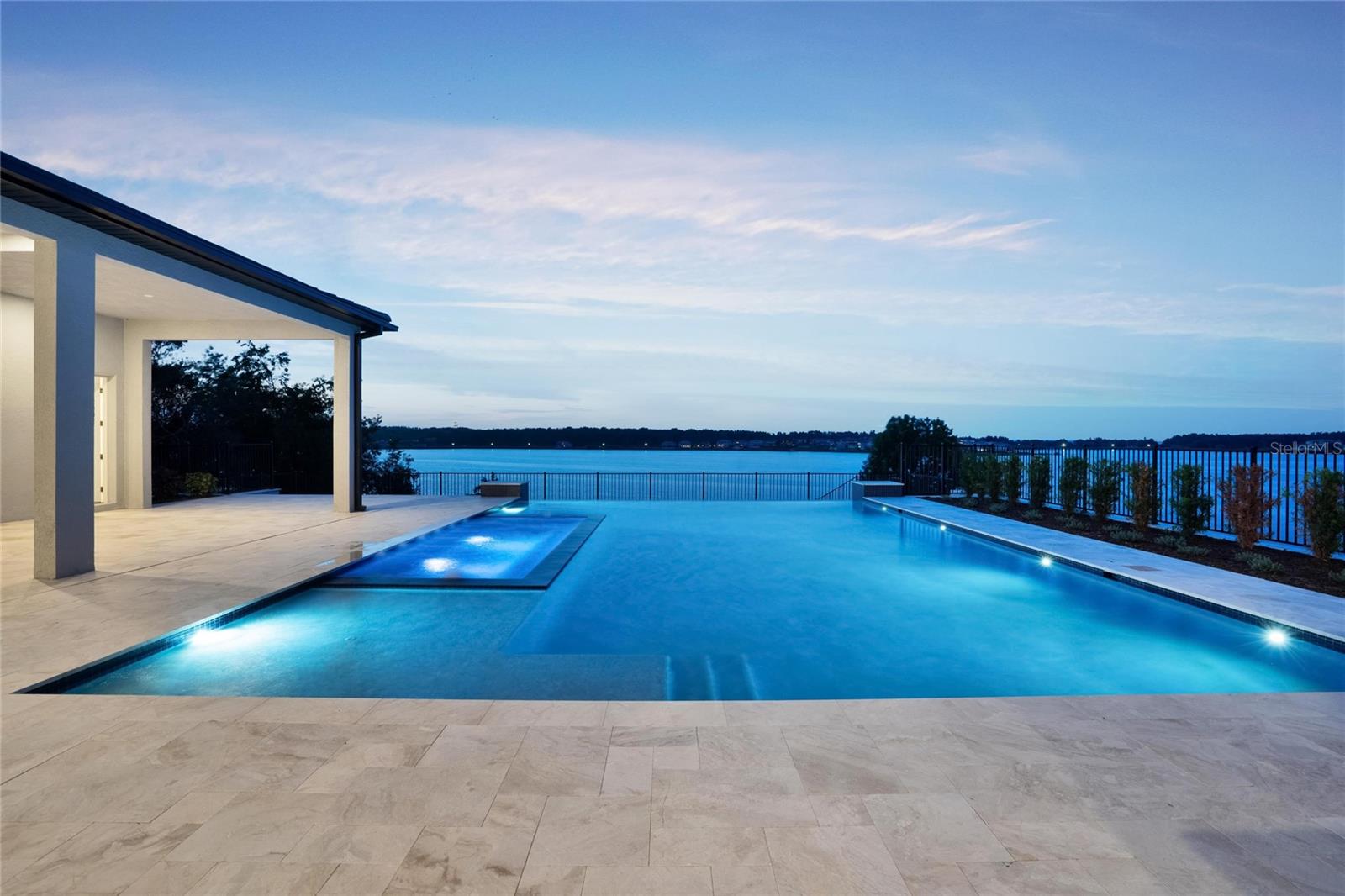 STAND OUT FROM THE ORIDNARY and elevate your lifestyle into the breathtaking realm of Bella Collina! Introducing a newly constructed luxury lakefront residence highly positioned on an expansive acre-plus lot in the exclusive Estates section of the community. Overlooking the serene shores of Lake Sienna, this exceptional home offers panoramic water views, sophisticated interior finishes, and an ultra-impressive outdoor living space designed for both relaxation and entertaining. This is more than just a home, it’s a statement of purpose and meaning. From the moment you step through the covered entry, you’re met with dramatic architectural elements including double floating staircases, a soaring two-story open concept gathering space and uninterrupted sightlines to captivating lake views. The main level has been thoughtfully designed for both convenience and everyday living and features a grand, open concept living, dining, and kitchen area, a luxurious primary suite with lake views, a secondary en-suite bedroom, a versatile flex room, powder bath, large laundry room, and a practical drop zone off one of two oversized three-car garages. Upstairs, a walkway bridge for added privacy separates three additional en-suite bedrooms, a private home office, and a spacious loft and media room prewired with multiple Cat 6 outlets for today’s connected lifestyle. What truly sets this home apart is the outdoor living area with a spacious travertine deck, high ceiling covered lanai, fully equipped summer kitchen, gas fireplace, and a dedicated pool bath and shower - all framed by picturesque water views. The custom-designed infinity-edge pool is flanked by two raised pedestal mounts ideal for fire bowls or water features. A multi-person heated spa and sun shelf invite tranquil moments under the sun. A stately cascading staircase leads to a lower-level retreat with artificial turf and aluminum fencing—prime for a fire pit or lounging area. A second terraced area below takes you down to a sprawling backyard with over 140 feet of shoreline. Planning to bring your boat? This is one of the select properties that can accommodate a private dock. Completed in April and awaiting your personal touch, this home is an extraordinary opportunity to own in one of Florida’s most prestigious guard-gated, golf communities. Bella Collina spans over 2000 acres and is truly a one-of-a-kind compelling setting from awe-inspiring scenery and topography to a collection of striking homes of distinction offering an unmatched lifestyle for those wanting luxury lakefront living. Highlights of the features and amenities include a Tuscan-inspired hilltop village showcasing a world-class 75,000 square foot clubhouse, ballroom, full-service spa, restaurants and bars. There are also tennis, pickleball courts, a state-of-the-art fitness center, resort-style pool w/ lap lanes, dog park and even a heli-pad. It is conveniently located within easy reach of Orlando International Airport, downtown Orlando, the town centers of Winter Garden, Clermont, Minneola, and the highly anticipated Olympus Project in Wellness Way. Outdoor enthusiasts will love the West Orange Trail just a few miles away. Top rated schools, hospitals, shopping, and dining are close by. Theme parks are a short easy drive... Whether you're seeking an upscale, active way of life filled with social aspects and a variety of choice activities, or a peaceful haven of refined living, 15121 Pendio delivers it all.