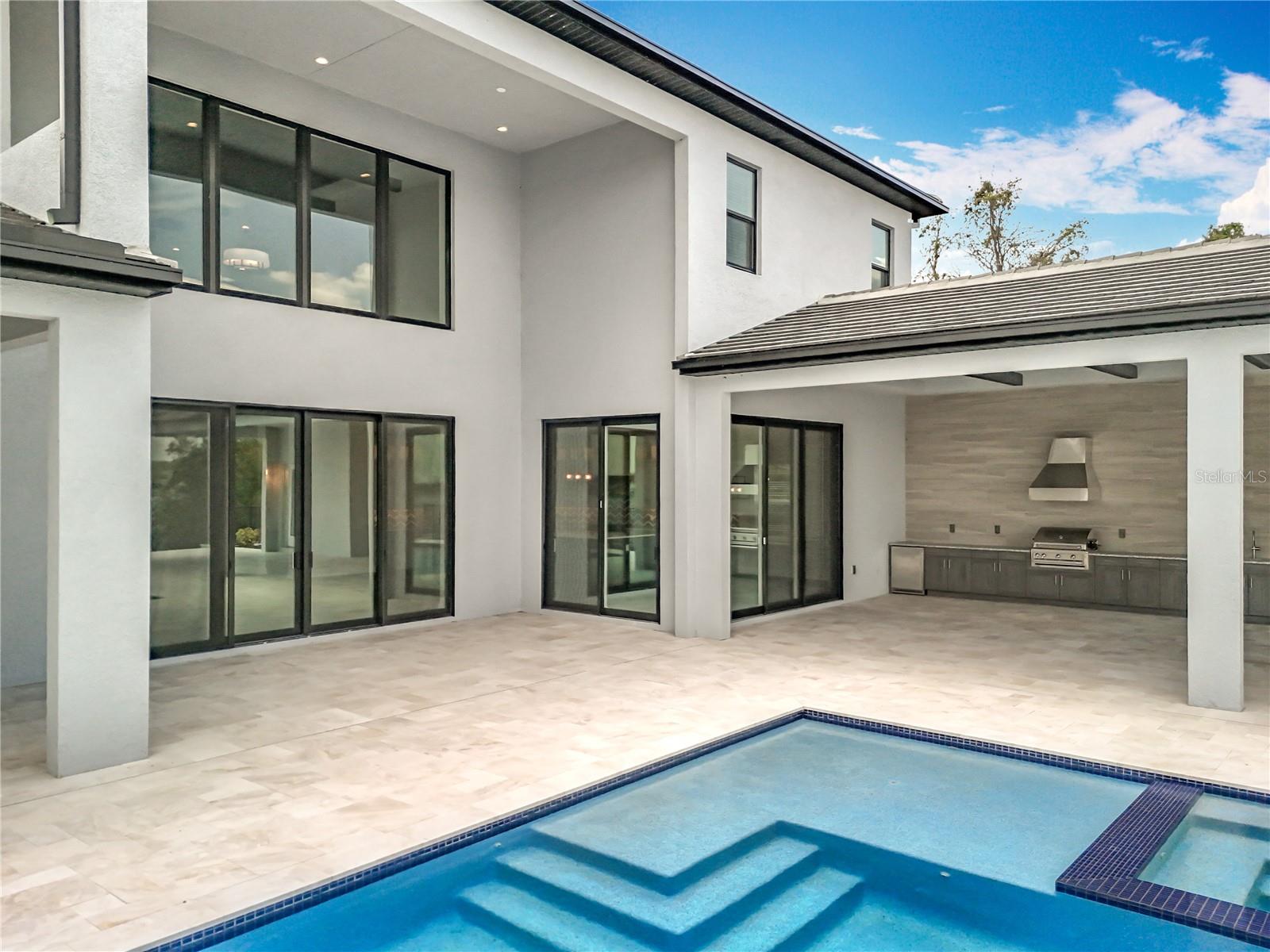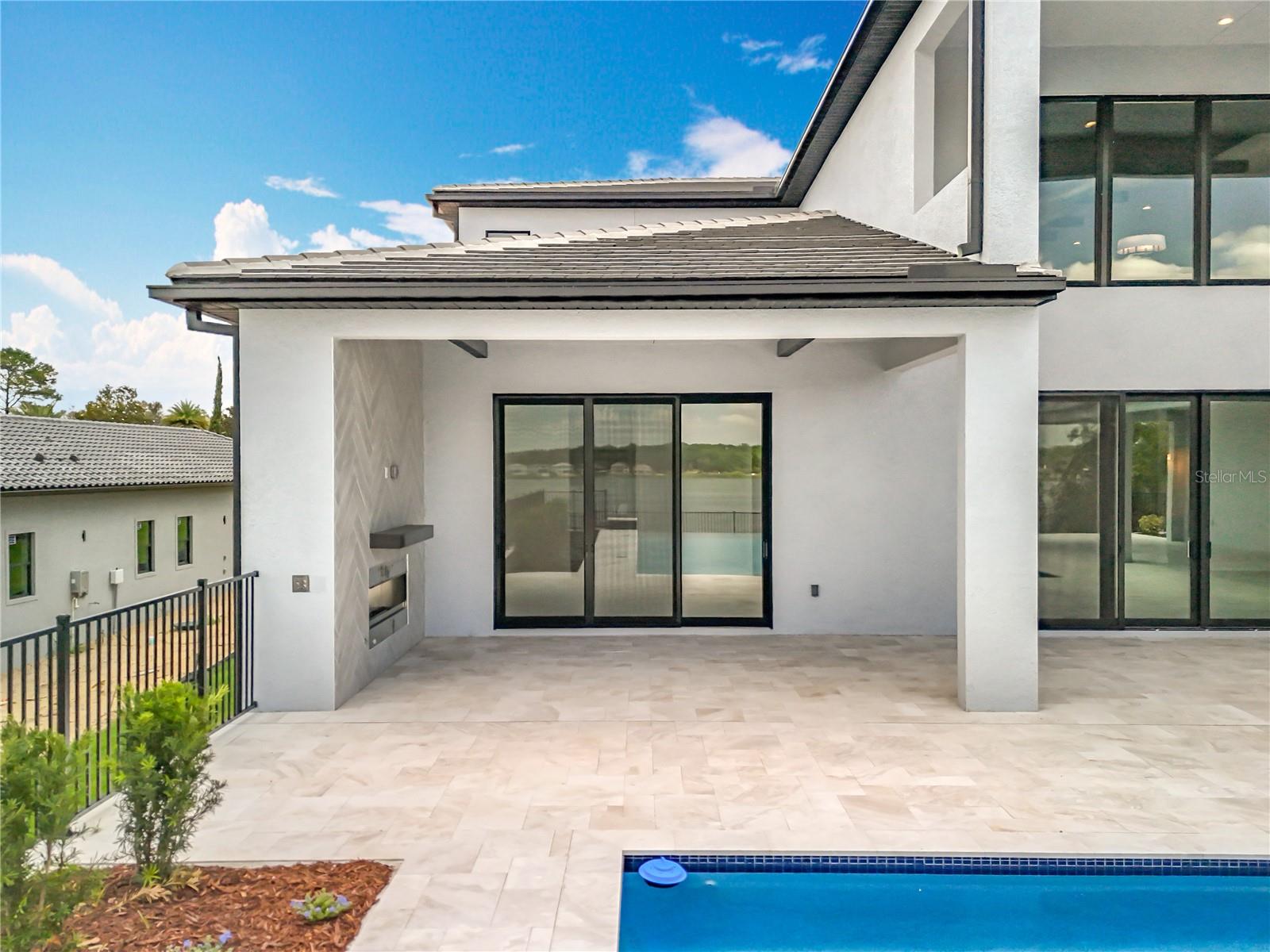 Lighting, Outdoor Grill, Outdoor Kitchen, Sidewalk, Sliding Doors